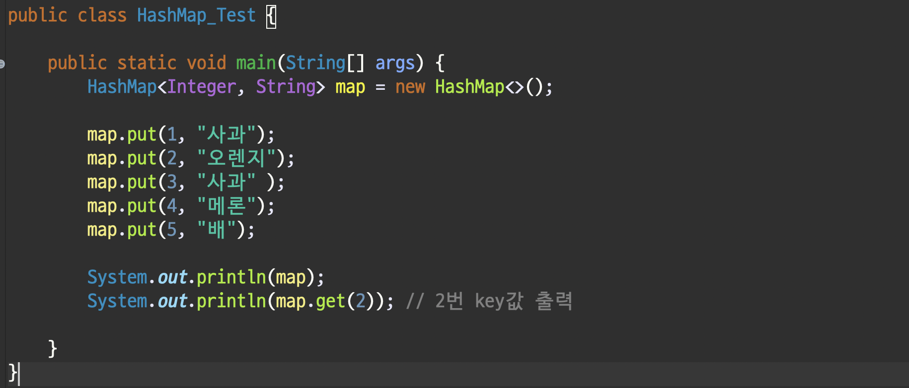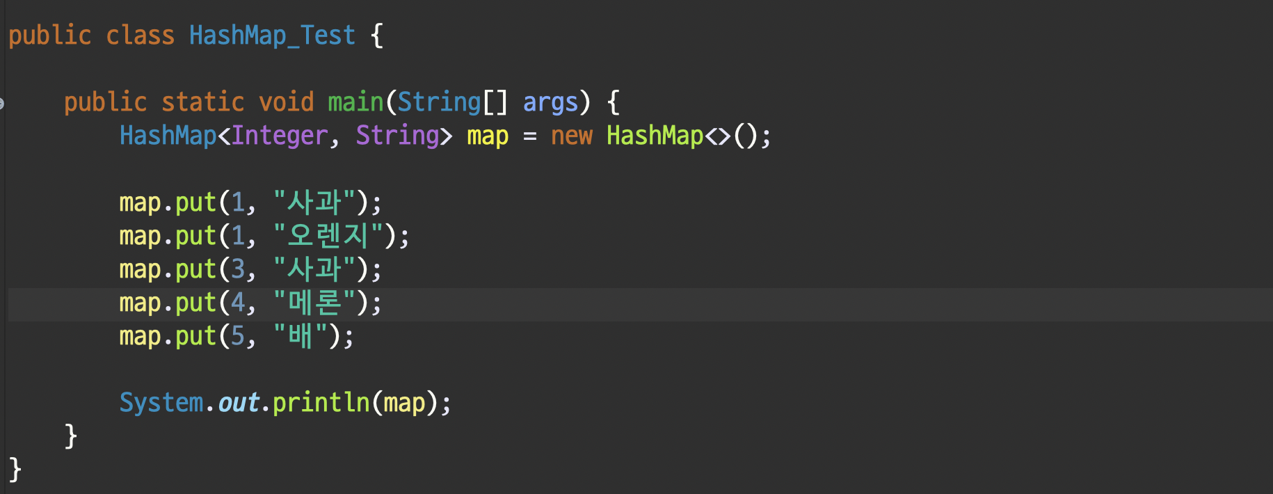 생성한 HashMap에 데이터를 넣어주려면 put 메소드를 사용하면 됩니다.