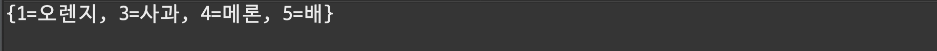 HashMap에 저장된 데이터를 출력하면 아래와 같이 key / value로 묶어서 출력이 됩니다.